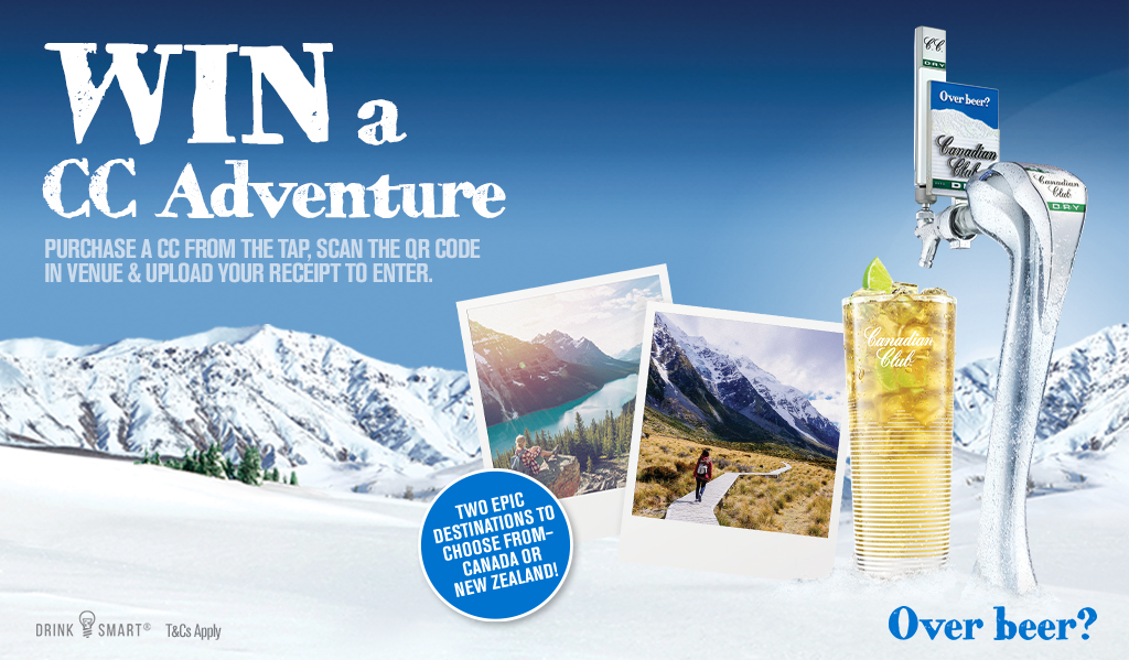 Win 1 of 2 Epic, All-Expenses-Paid Adventures to Canada or New Zealand! Grab a Canadian Club & Dry on tap, scan the QR code in venue, and upload your receipt to enter the draw. Two unforgettable trips are up for grabs. Where will you go? Prize is drawn July 1st. |